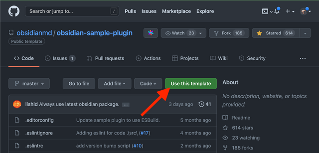 - 깃헙 옵시디언 샘플 플러그인 리포지토리에 접속합니다.