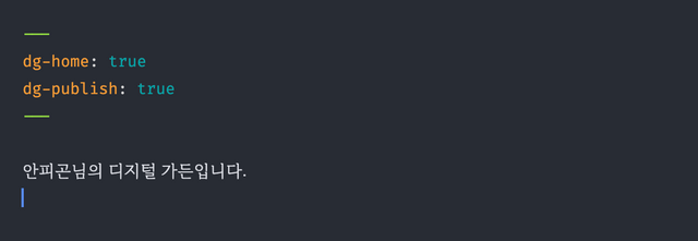 - dg-home: 이것은 홈페이지 또는 디지털 가든의 항목이라는 것을 플러그인에 알려줍니다. (하나의 메모에만 사용합니다)