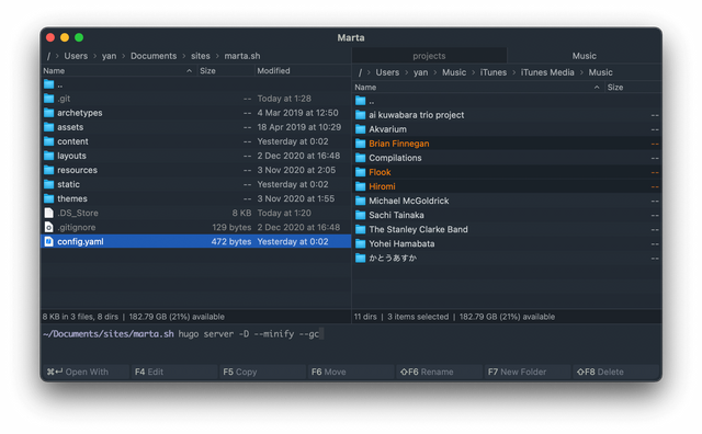 이전에는 Double Commander 를 사용하다가 UI가 더 이쁜 Marta로 갈아탔습니다.