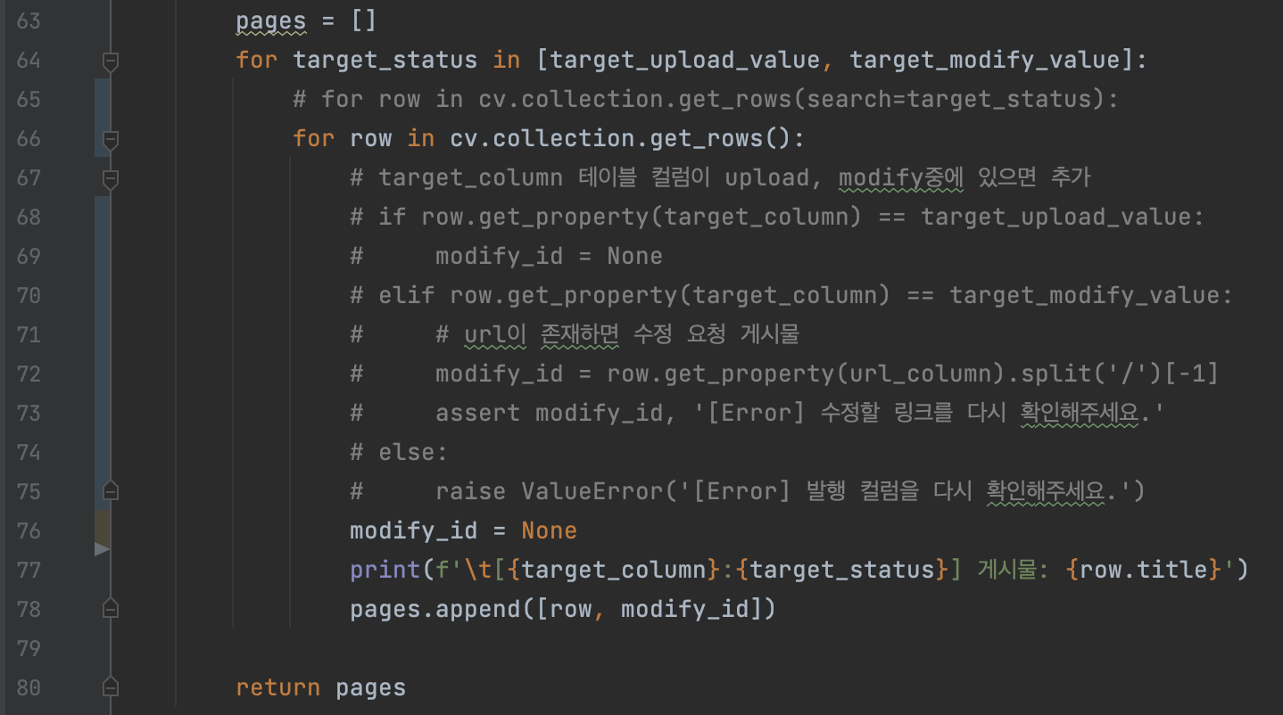 기능이 작동하지 않았습니다. 그래서 cv.collection.get_rows(search=target_status)
