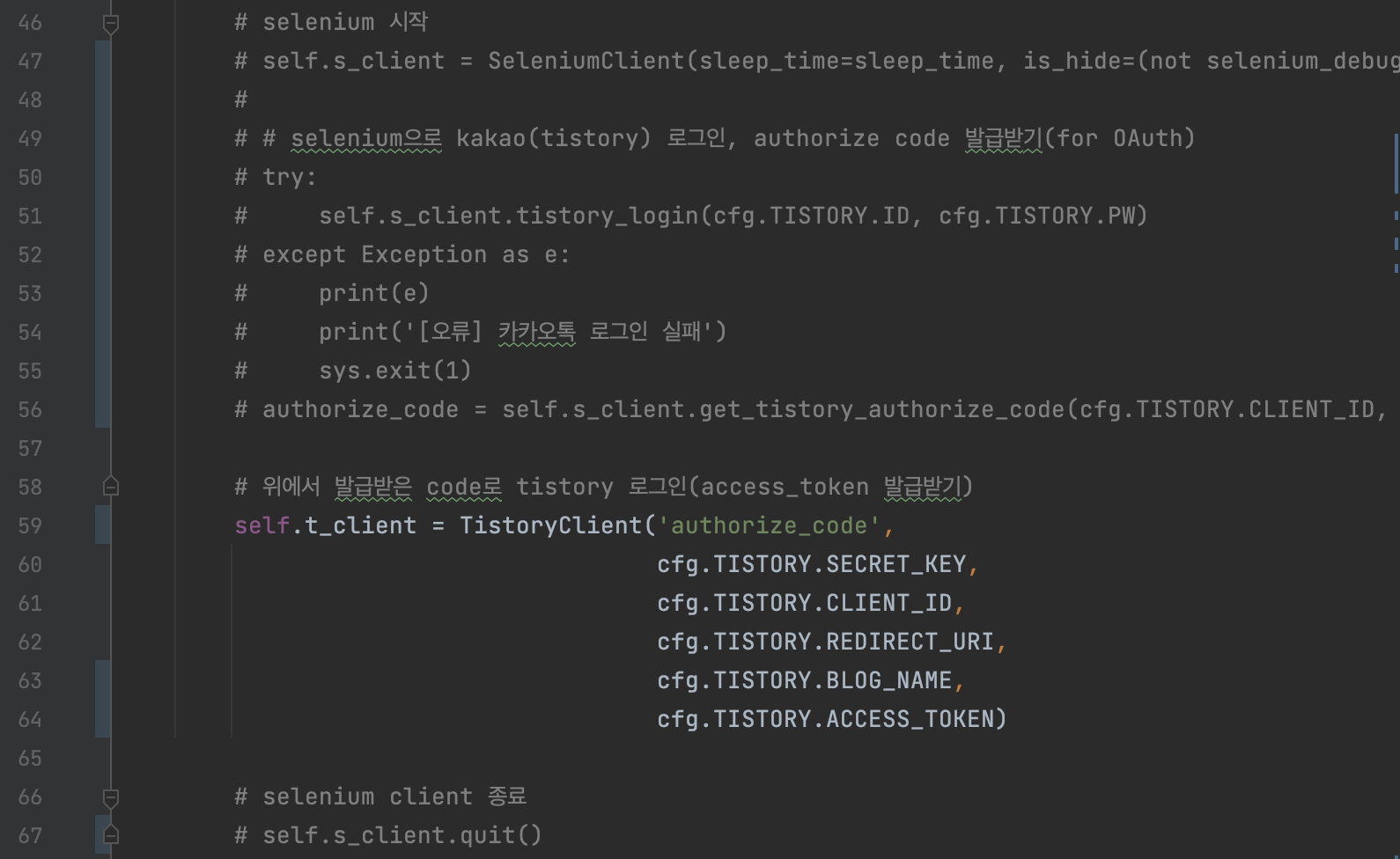 또한 main.py 파일에서 셀레니움을 사용하여 자동 로그인하는 코드를 모두 주석 처리했습니다.