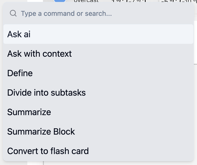 /ollama명령어 사용: Logseq에서/ollama명령어를 입력하면 Ollama를 쉽게 호출할 수 있습니다.