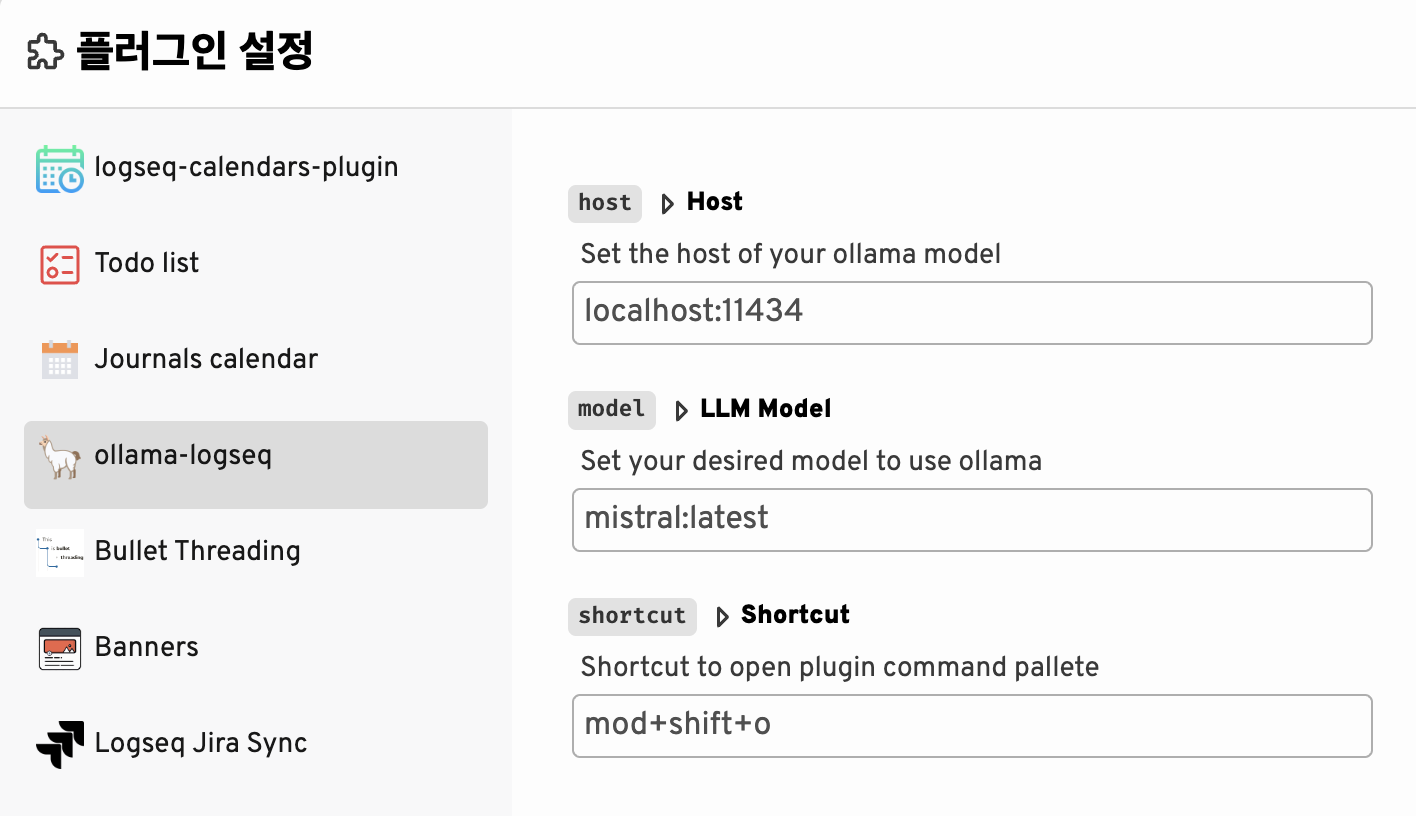 Logseq Ollama 플러그인 설치 및 기본 설정