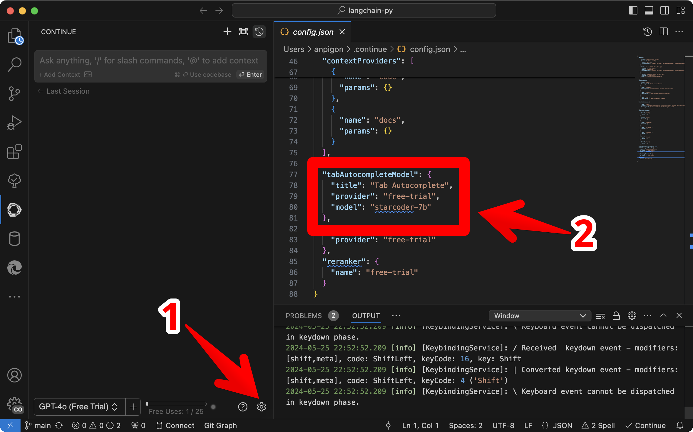 config.json에서 tabAutocompleteModel 부분을 아래와 같이 수정합니다.