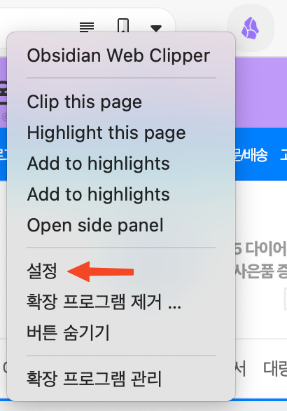2단계: 옵시디언 웹 클리퍼 설정 페이지 이동