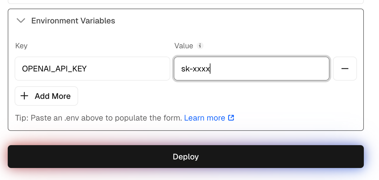 Environment Variables에 본인의 AI API 키를 입력합니다.