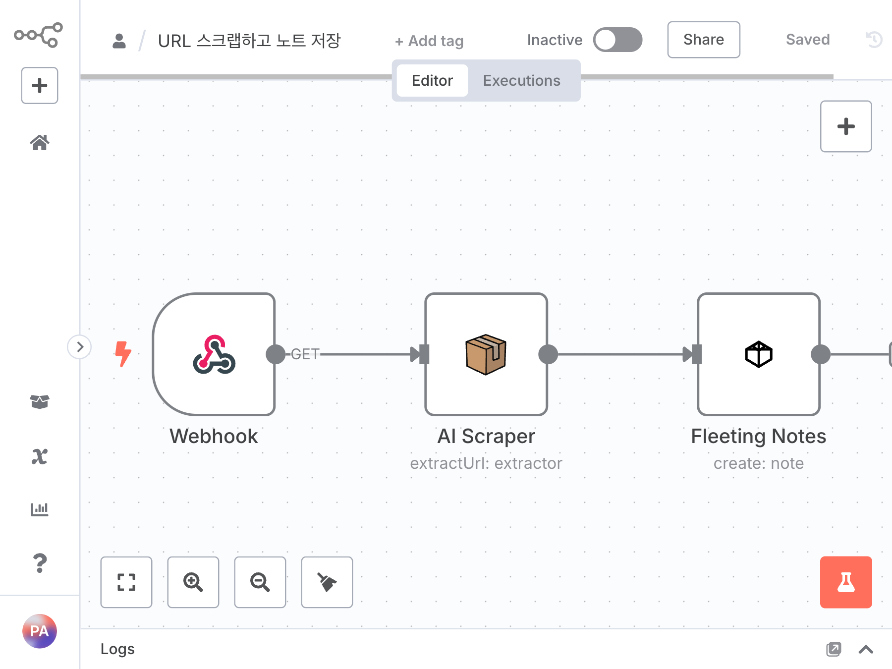 시나리오: 웹훅을 통해 URL 스크랩하고 노트 저장 - 웹 URL을 받아 자동으로 콘텐츠를 추출하여 Fleeting Notes에 저장